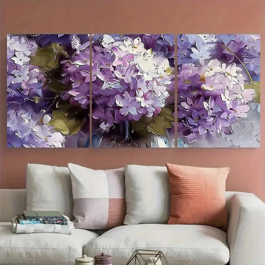 3pcs Lilac Blossom Floral with Green Leaves Metal Print Ready to Hang Art
