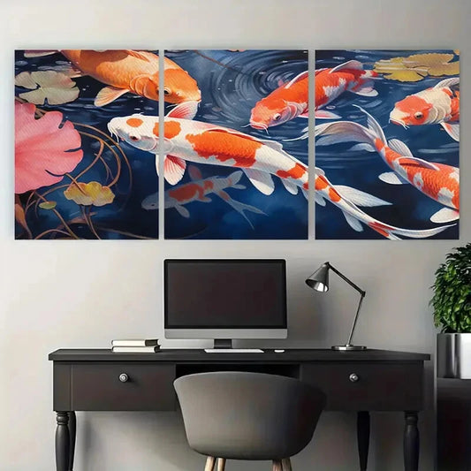 3pcs Vibrant Koi Fish and Lilly Pads Design Metal Print Ready to Hang Art
