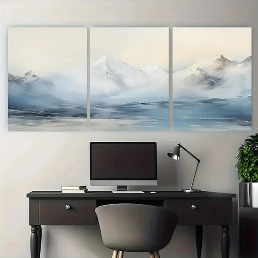 3pcs Serene Blue and White Peaks with Misty Design Metal Print Ready to Hang Art