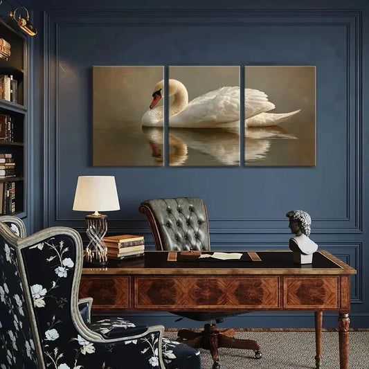 3pcs Elegant Swan Art White Feathers Nature Scene Metal Print Ready to Hang Art