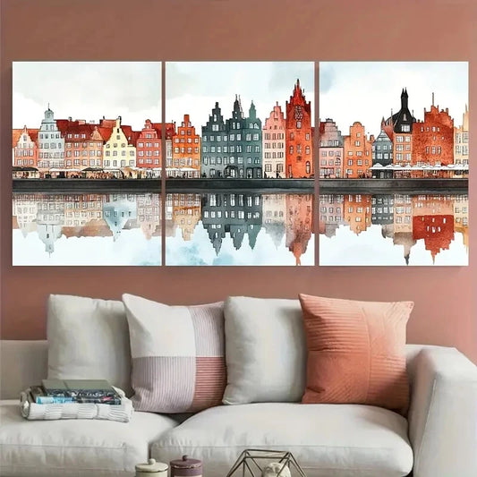 3pcs Gdansk Poland Travel Cityscape Waterfront Metal Print Ready to Hang Art