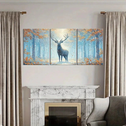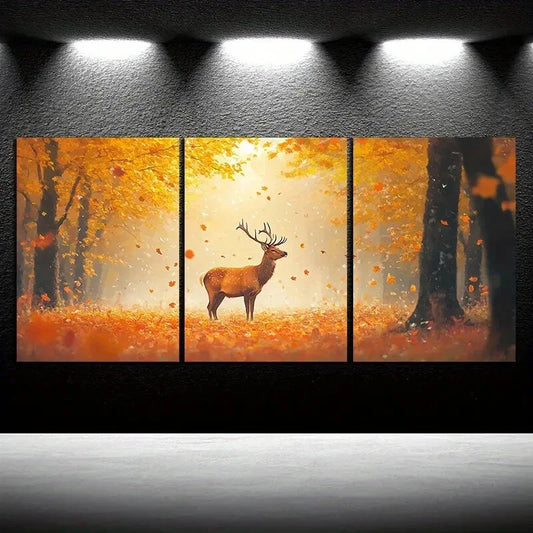 3pcs Deer Under the Sun Triple Mural Metal Print Ready to Hang Art