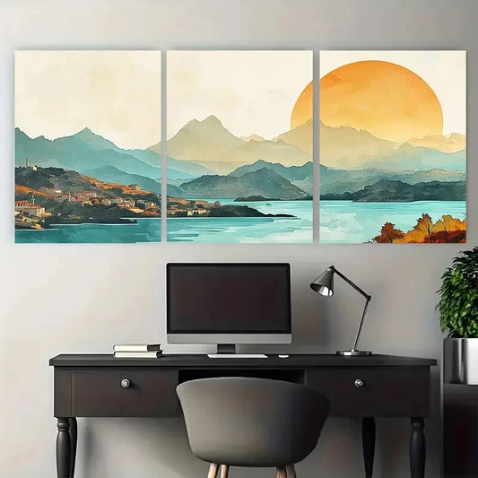 3pcs Cityscape Art Urban Skyline Sunset Glow Metal Print Ready to Hang Art