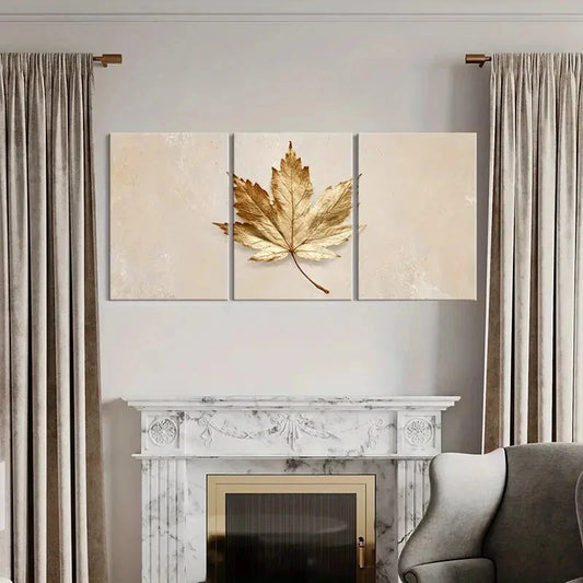 3pcs Golden Maple Leaf Art Elegant Poster Metal Print Ready to Hang Art