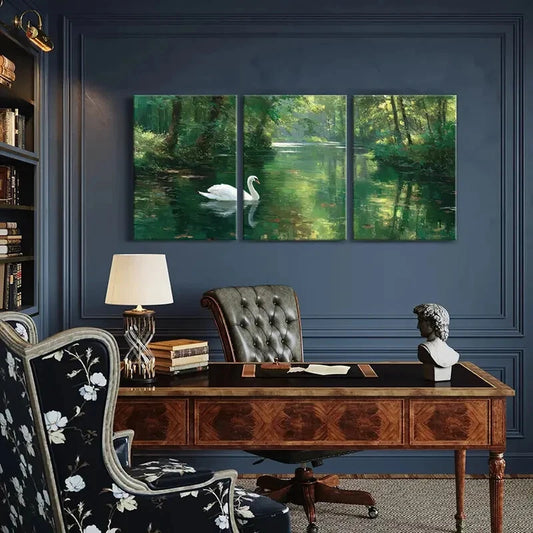 3pcs Enchanting Swan Lake Forest Reflections Metal Print Ready to Hang Art