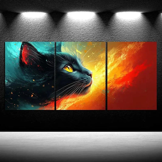 3pcs Colorful and Beautiful Cat Metal Print Ready to Hang Art