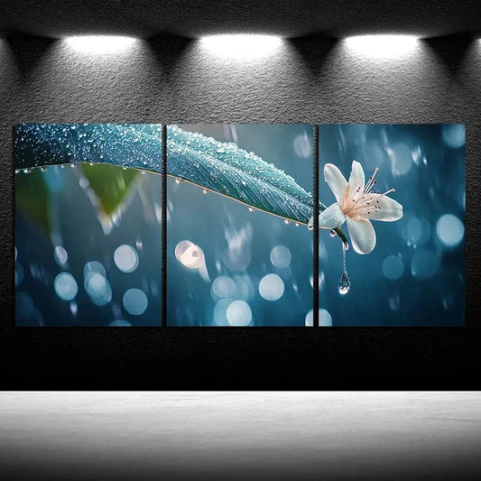 3pcs Leaves with Dewdrops Design Metal Print Ready to Hang Art