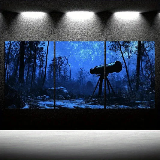 3pcs Mysterious Telescope Forest Blue Themed Metal Print Ready to Hang Art