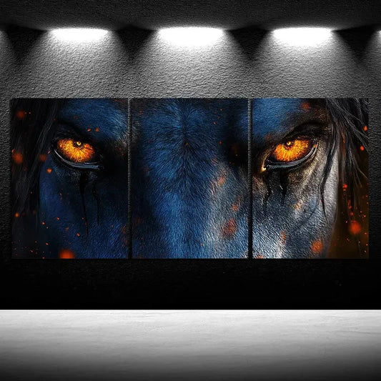 3pcs Angry Horse Stunning Golden Eyes Metal Print Ready to Hang Art