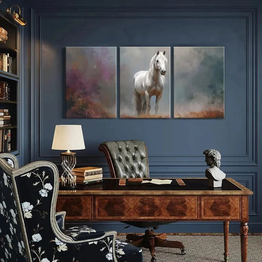 3pcs White Horse Artwork Abstract Painting Metal Print Ready to Hang Art