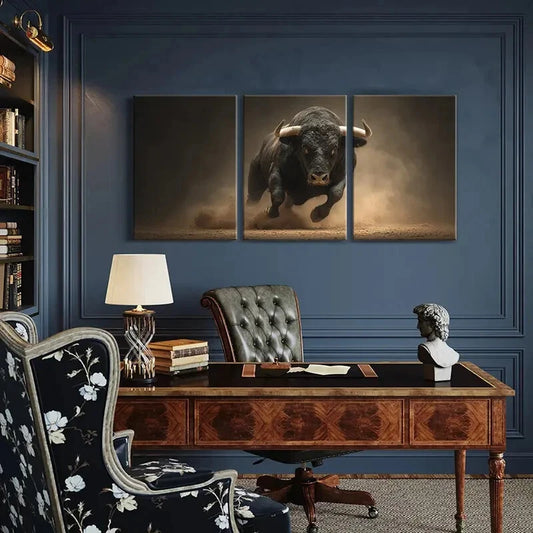 3pcs Bull Charge Dust Cloud Dynamic Action Metal Print Ready to Hang Art