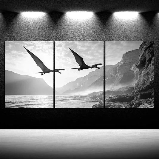3pcs Dragons Flying On The Coast Metal Print Ready to Hang Art