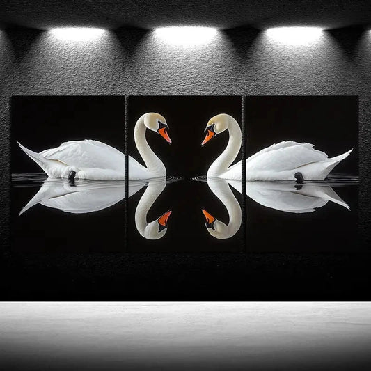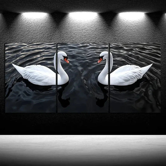 3pcs Bird Black and White Swan Metal Print Ready to Hang Art