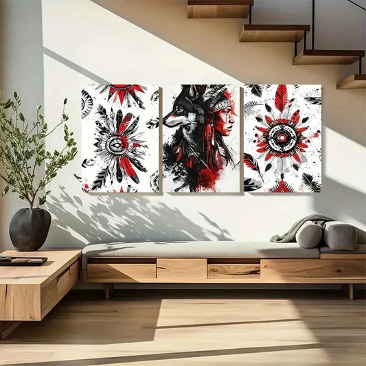 3pcs Native American Wolf & Feather Designs Metal Print Ready to Hang Art