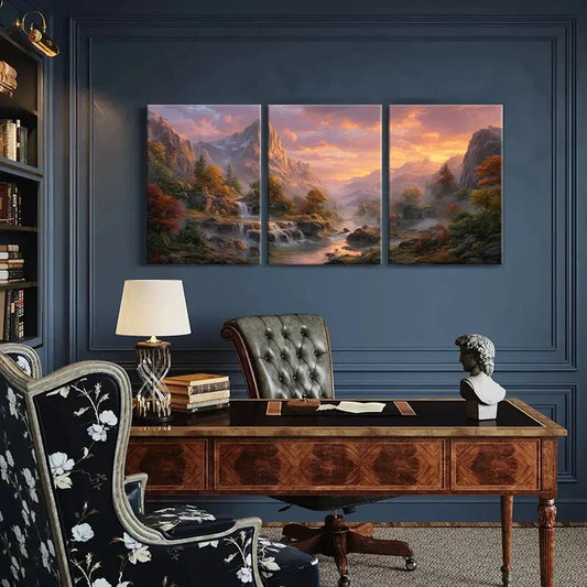 3pcs Autumn Mountain Landscape Waterfall Scenery Metal Print Ready to Hang Art