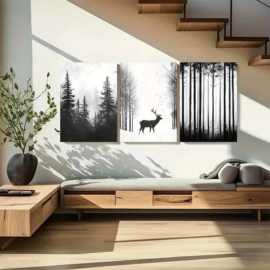 3pcs Deer in Winter Forest Nature Design Metal Print Ready to Hang Art