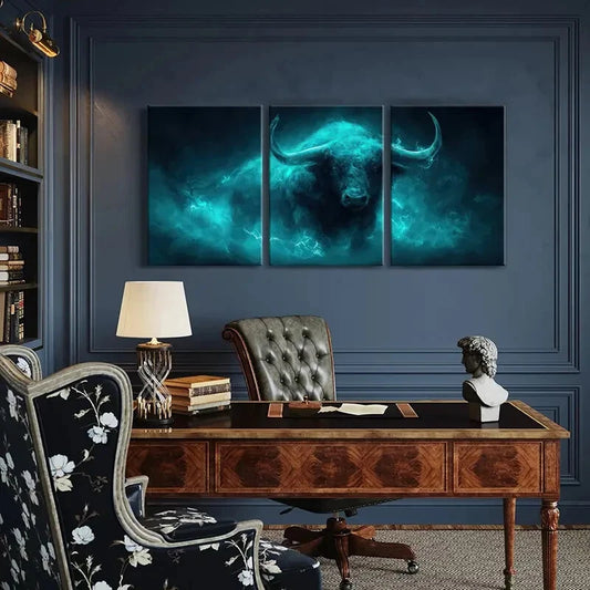 3pcs Artistic Buffalo Illustration Abstract Metal Print Ready to Hang Art