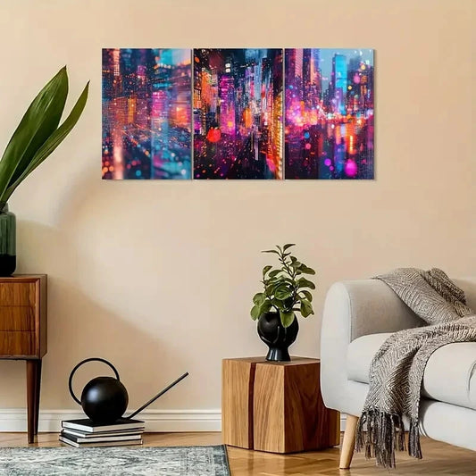3pcs Vintage Abstract Urban Night Scene Metal Print Ready to Hang Art