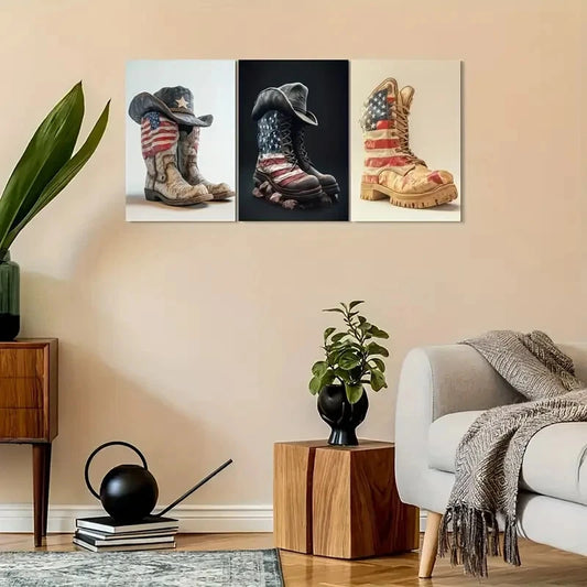3pcs Patriotic American Flag Metal Print Ready to Hang Art