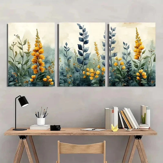 3pcs Vibrant Floral Wild Stamen Design Metal Print Ready to Hang Art
