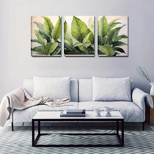 3pcs Tropical Green Banana Leaf Decoration Wall Art Set Canvas Framed 40x60cm - High Quality Print 100% Australian Made Wall Canvas Ready to Hang