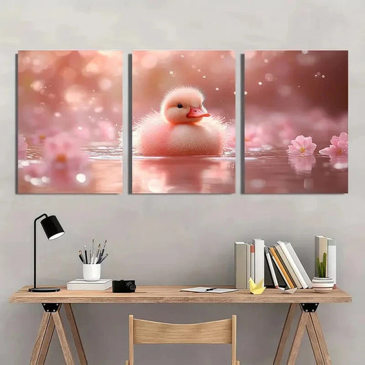 3pcs Pink Tutu Duckling Bird River Metal Print Ready to Hang Art