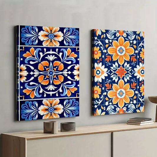 2pcs Set of Colorful Geometric Shapes and Patterns Canvas Framed 50x75cm - High Quality Print 100% Australian Made Wall Canvas Ready to Hang