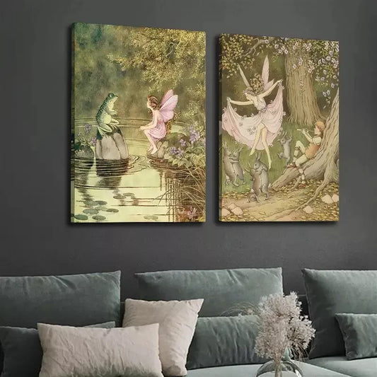 2pcs Whimsical Forest Scene Painting Canvas Framed 50x75cm - High Quality Print 100% Australian Made Wall Canvas Ready to Hang