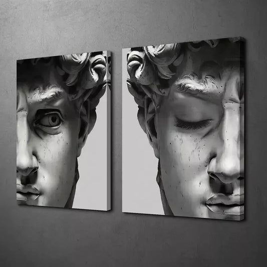 2pcs Interesting Plaster Statue Decoration Painting Canvas Framed 50x75cm - High Quality Print 100% Australian Made Wall Canvas Ready to Hang