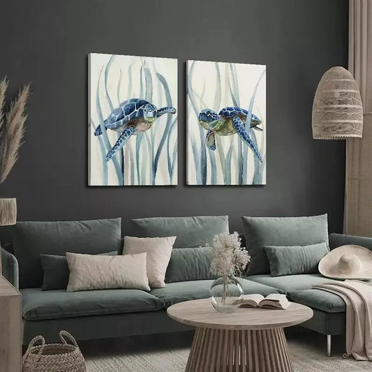 2pcs Showcasing Marine Life, Natural Flora, Stylish Aesthetics Canvas Framed 50x75cm - High Quality Print 100% Australian Made Wall Canvas Ready to Hang