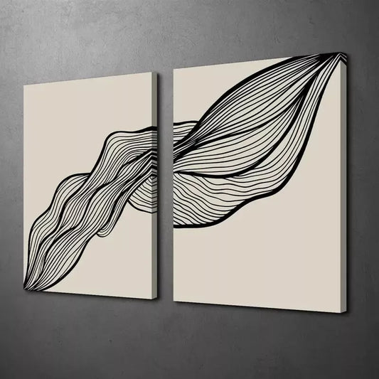 2pcs Wavy Black Line Art Canvas Framed 50x75cm - High Quality Print 100% Australian Made Wall Canvas Ready to Hang