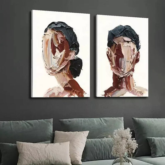 2pcs Painting, Man And Woman Portraits, Abstract Figure Oil Canvas Framed 50x75cm - High Quality Print 100% Australian Made Wall Canvas Ready to Hang