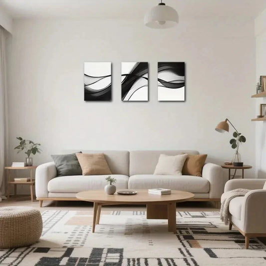 3pcs Black and White Abstract Art Painting Metal Print Ready to Hang Art