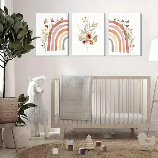 3pcs Rainbow Cute Boho Wildflowers Paintings Metal Print Ready to Hang Art