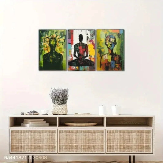 3pcs Vibrant Abstract Meditation Figures Metal Print Ready to Hang Art