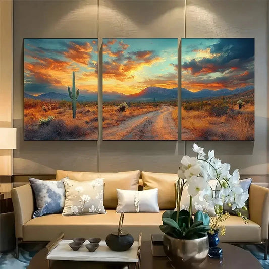 3pcs Saguaro Cactus Mountain Scene Metal Print Ready to Hang Art