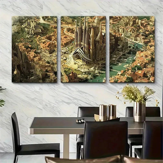 3pcs Vibrant Antoni Gaudí's Barcelona Cathedral Metal Print Ready to Hang Art