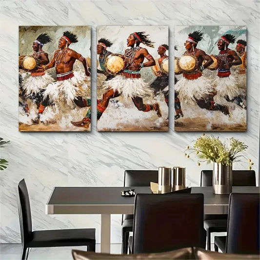 3pcs South African Zulu Indlamu Dance Art Metal Print Ready to Hang Art