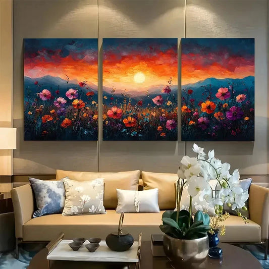 3pcs Colorful Flower Garden Sunset Metal Print Ready to Hang Art