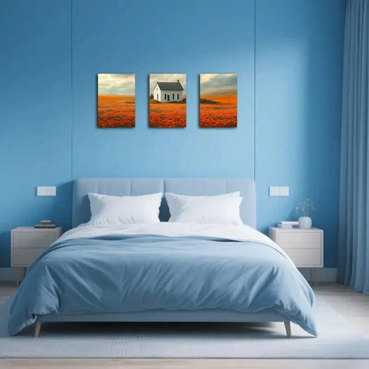 3pcs Single Home In a Painting Abstract Art Metal Print Ready to Hang Art