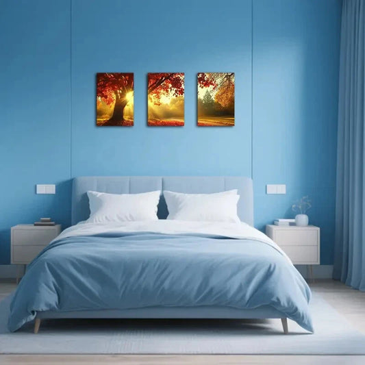 3pcs Autumn Vibrant Red & Orange Tree Scenery Metal Print Ready to Hang Art