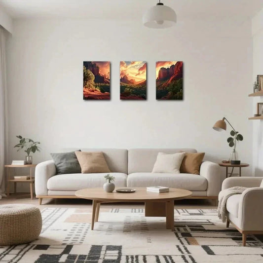 3pcs Vibrant Landscape Paintings Metal Print Ready to Hang Art