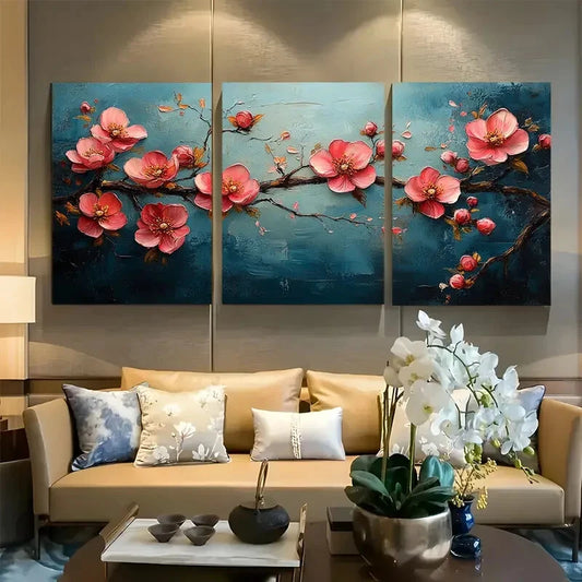 3pcs Vibrant Floral Abstract Landscape Paintings Metal Print Ready to Hang Art