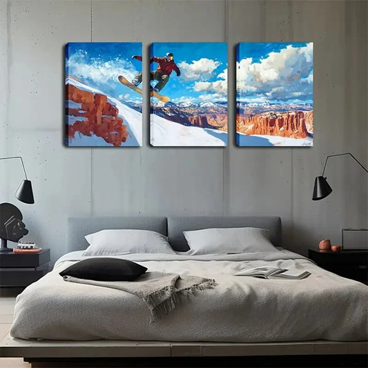 3pcs 3 Pairs of Skiing & Blue Sky Canvas Art Print Metal Print Ready to Hang Art