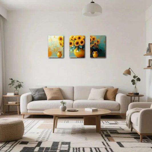 3pcs Vibrant Yellow and Orange Abstract Paintings Metal Print Ready to Hang Art