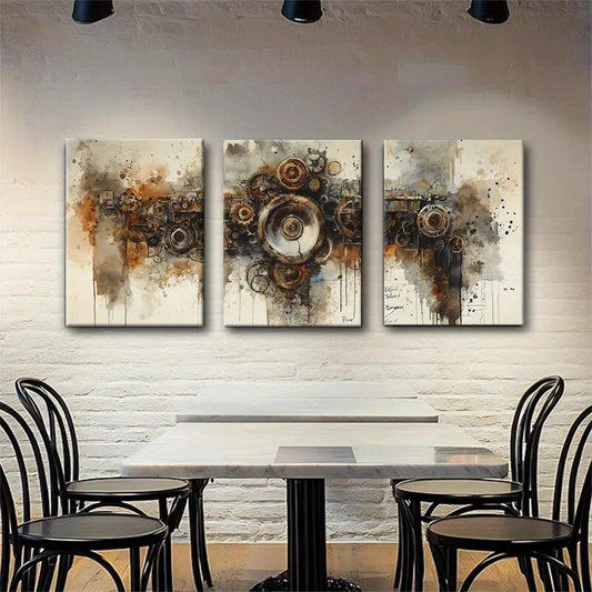 3pcs Abstract Industrial Rusty Gears & Drips Metal Print Ready to Hang Art