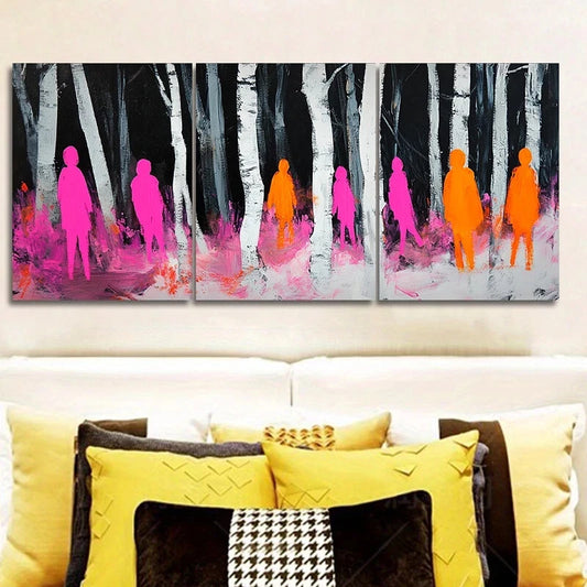 3pcs Vibrant Pink Silhouette Woodland Scene Metal Print Ready to Hang Art