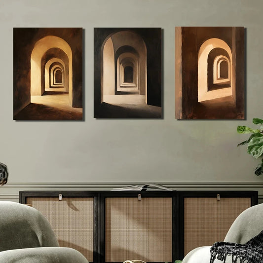 3pcs Mediterranean Golden Light Classic Metal Print Ready to Hang Art