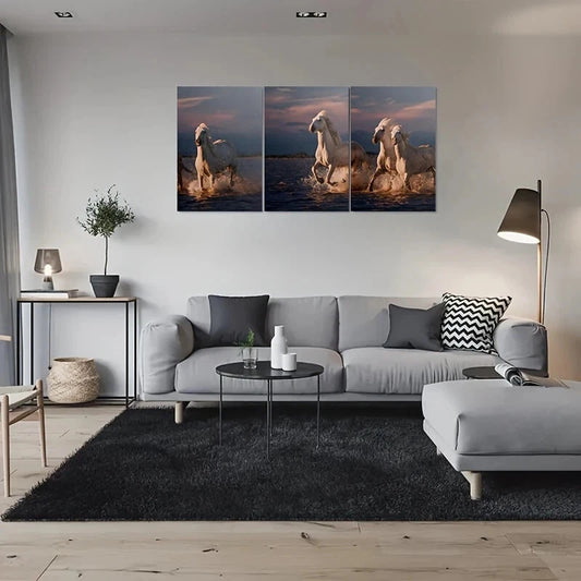 3pcs White Horses Running in Water Metal Print Ready to Hang Art