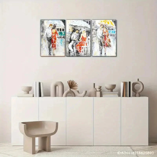 3pcs Romantic Couple with Umbrella Colorful Urban Metal Print Ready to Hang Art